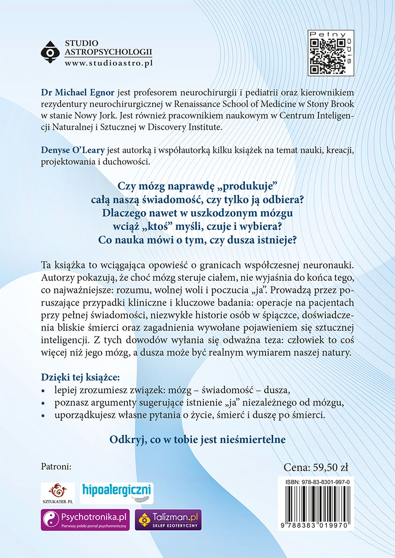Czy kiedykolwiek czułeś wewnętrzny sprzeciw, słysząc, że jesteś jedynie „biologicznym robotem”, a twoje uczucia, decyzje i tożsamość to wyłącznie wynik reakcji chemicznych? Współczesna narracja często redukuje człowieka do materii, sugerując, że wraz z końcem pracy mózgu kończy się absolutnie wszystko. Jednak czy neuronauka rzeczywiście potwierdza ten smutny scenariusz, czy może – wbrew pozorom – dostarcza argumentów na rzecz czegoś zupełnie odwrotnego? Książka Neuronauka duszy to przełomowa lektura, która rzuca wyzwanie materialistycznemu światopoglądowi, opierając się nie na życzeniowym myśleniu. Ale na twardych danych klinicznych i doświadczeniu z sali operacyjnej.